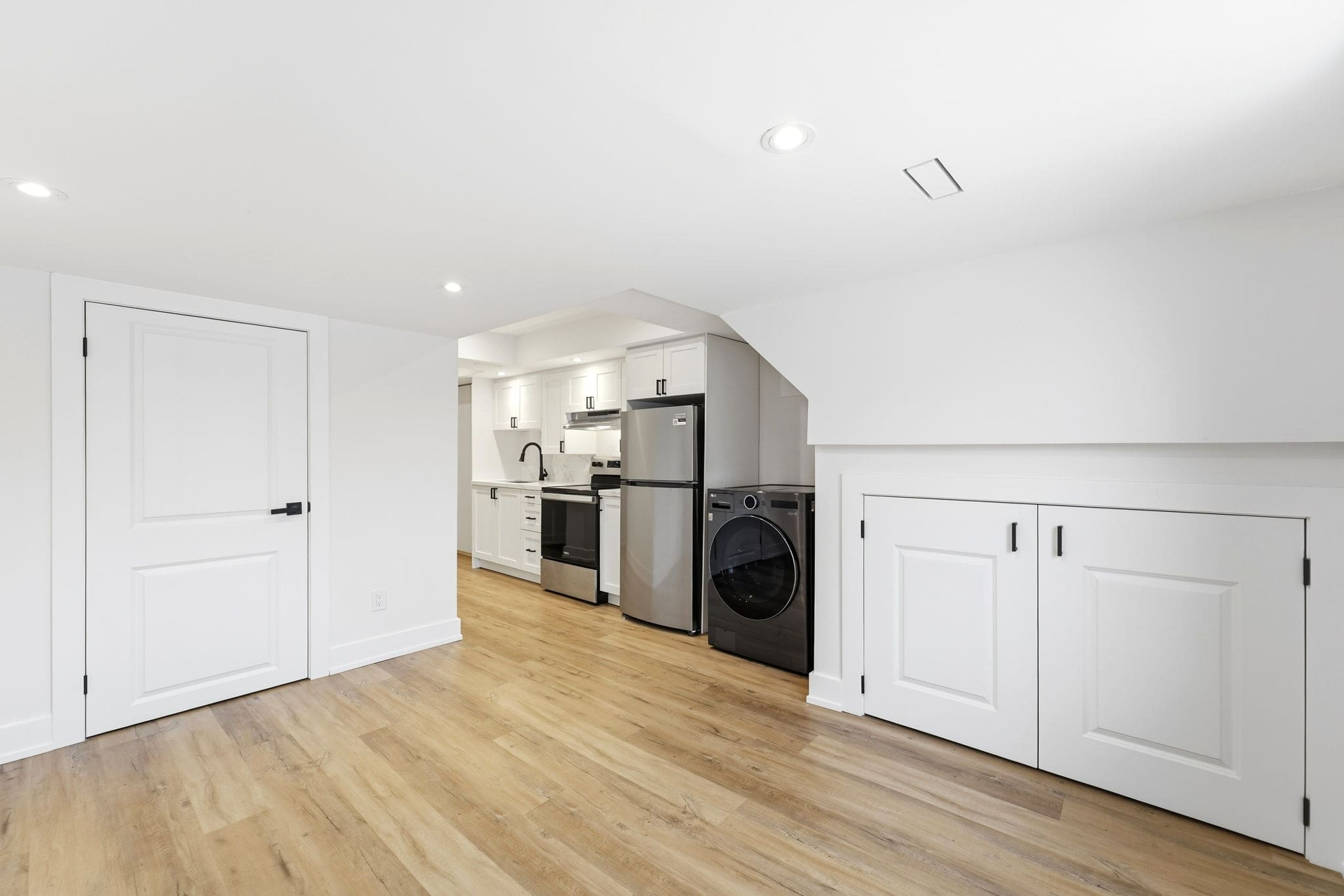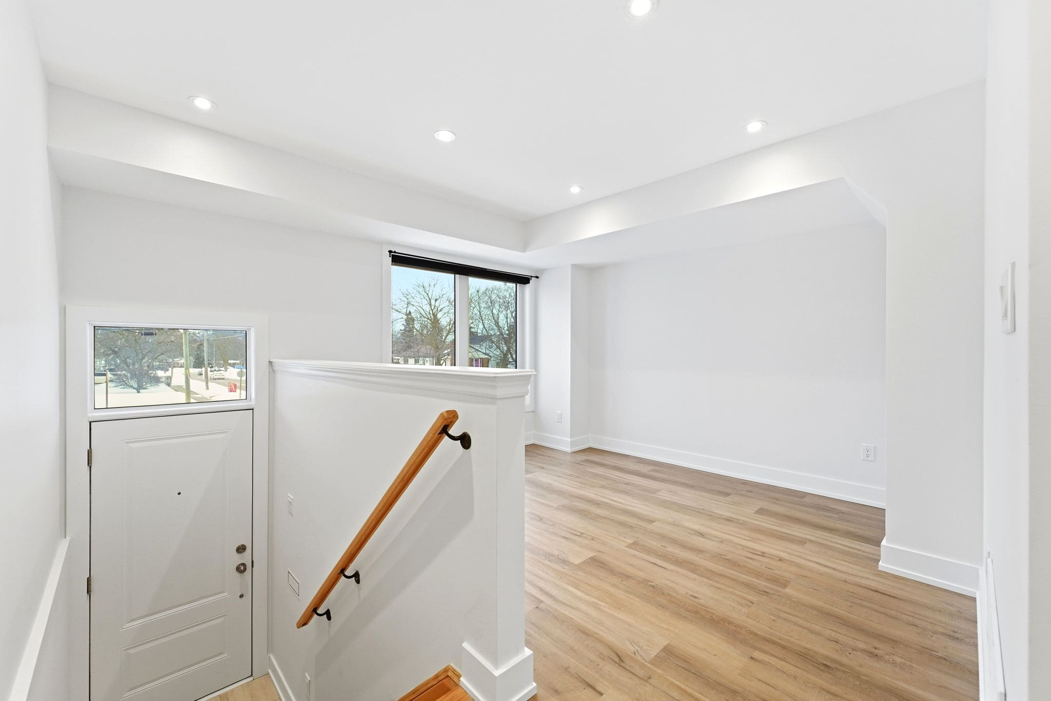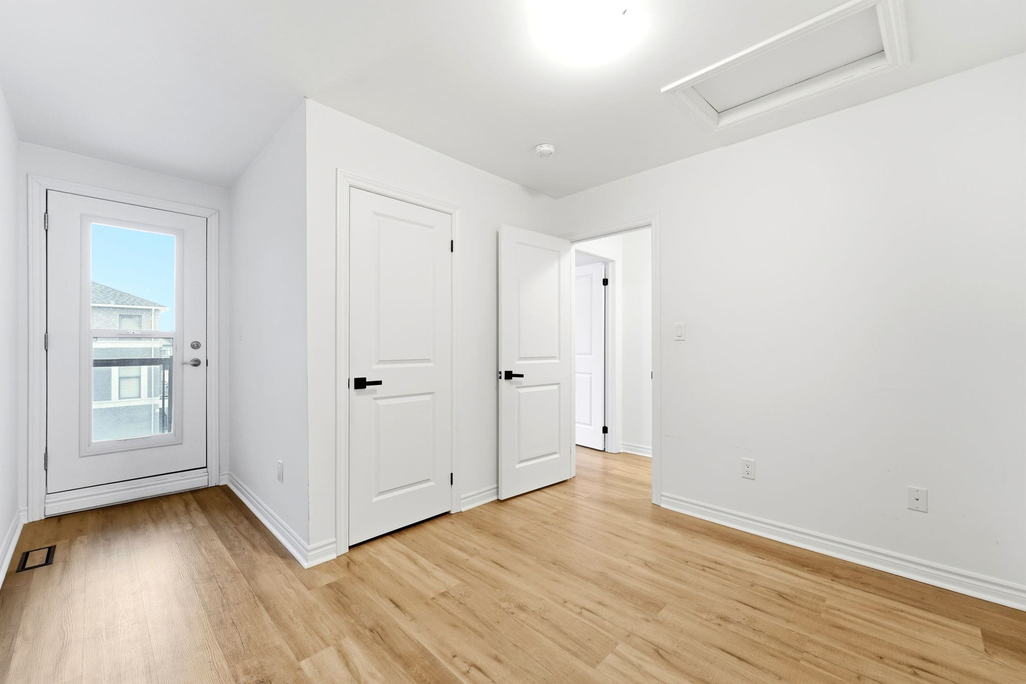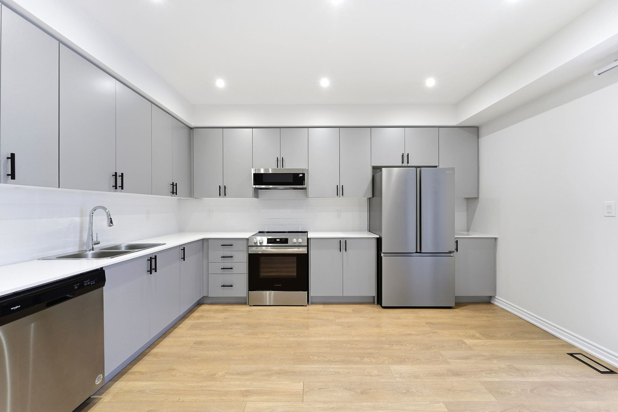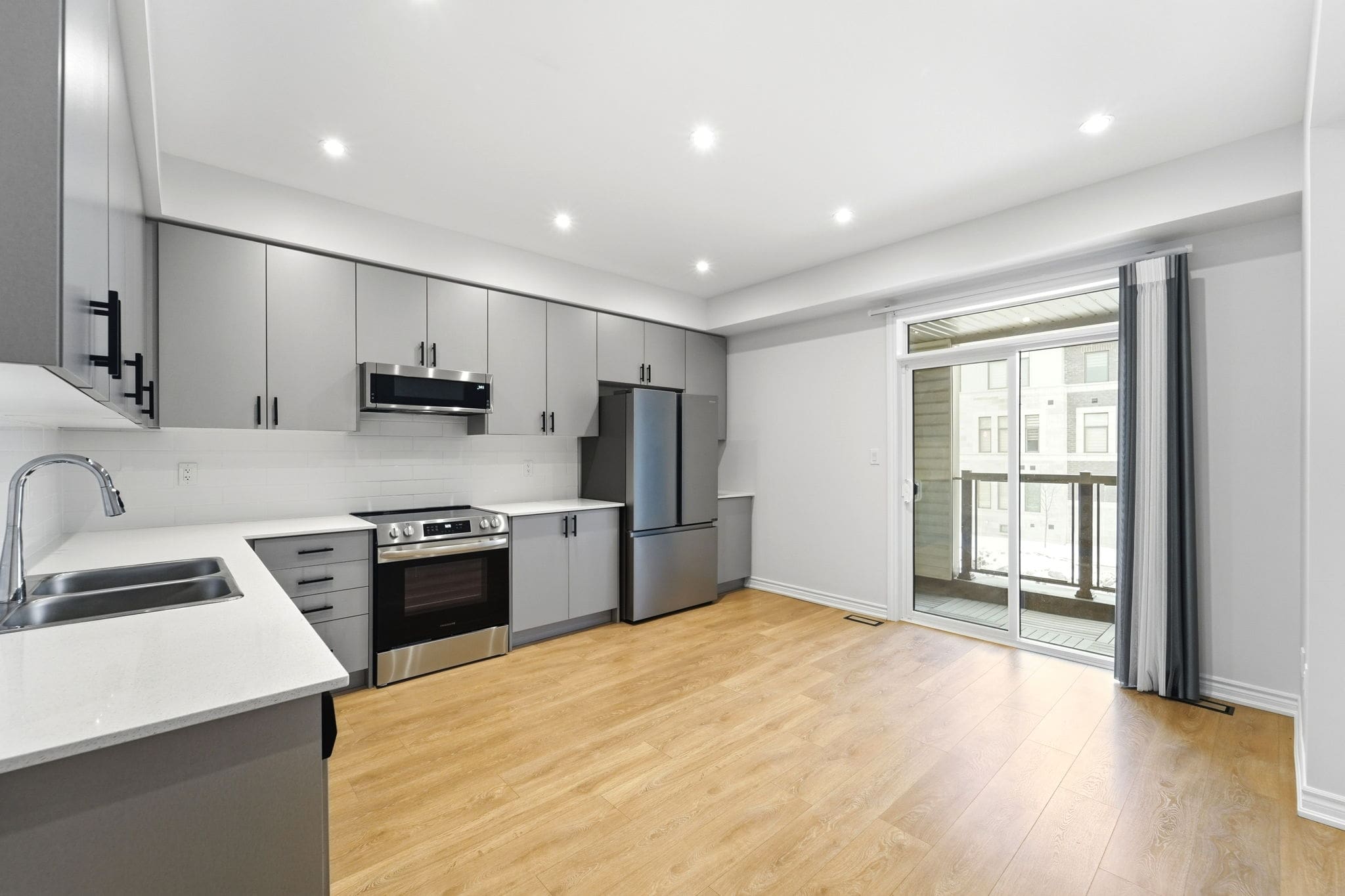 Welcome to 414 Okanagan Path, located in a prime Oshawa neighborhood, just under a 5-minute drive to Highway 401. This beautifully updated townhouse is perfectly positioned close to grocery stores, shopping, restaurants, and all daily essentials, offering exceptional convenience for modern living.This 3-bedroom, 3-bathroom townhouse unit has been tastefully updated from top to bottom, offering a modern and refined living experience. The home features luxury vinyl flooring throughout, flat ceilings with pot lights, built in central vac and premium top-of-the-line kitchen appliances, creating a sleek and contemporary feel. Enjoy two private balconies, an automatic drive-in garage, and a camera surveillance system for tenant use for added peace of mind.The property is conveniently located near several elementary schools, high schools, and post-secondary institutions, including Durham College, Ontario Tech University (Ontario Institute of Technology), and Trent University Durham GTA, all within a short driving distance-making it ideal for families, students and working professionals. The primary bedroom offers a private ensuite bathroom, while the separate living room provides a tucked-away entertainment space perfect for movie nights or hosting guests. Tenant to pay 70% of all utilities. Townhouse has been professionally configured into two completely separate, self-containedunits. The complex offers ample guest parking, making it easy to host visitors. A rare opportunity to lease a modern, move-in-ready home in a highly convenient Oshawa location.