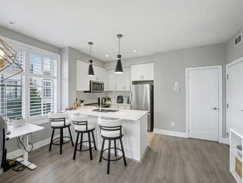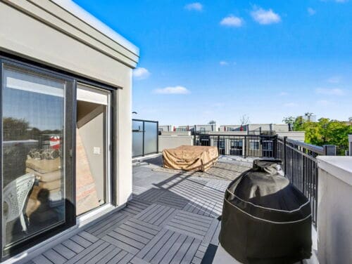 Rare Corner End Unit In Mineola! This 2 Bedroom, 3 Bathroom Townhome Offers Over 1,300 Sq. Ft Of Luxurious Living + An Oversized Rooftop Terrace In A Boutique Community Just 3 Years New. Premium Location At The Back Of The Complex For Maximum Privacy & Quiet. Enjoy A Bright, Open-Concept Floor Plan Ideal For Entertaining, Featuring Engineered Hardwood Throughout. An Eat-In Kitchen With Breakfast Bar & Combined Dining Area. One Of The Few Units With A Powder Room On The Main Level, Along With A Spacious Living Area Flooded With Natural Light.The Upper Level Includes A Primary Suite With Den (Perfect For Work From Home) & A Modern 3-Pc Ensuite With Glass-Enclosed Shower. Additional Third-Level Storage & Utility Room Provides Extra Space For All Your Needs. Top It Off With A Show-stopping Oversized SW-Facing Rooftop Terrace (Approx. 450 Sq.Ft.) Featuring Durable Composite Decking, A Water Hose Hook-Up, Electrical Outlet, Stunning Views & Incredible Sun Exposure.